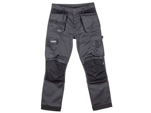 A lightweight work trouser featuring Cordura holster pockets and knee pad pockets. This trouser has a modern tapered leg and the fabric has 4 way comfort stretch. Cordura reinforced hem. Side cargo pocket and padded phone pocket to opposite leg. Triple stitched in key areas. Low rise comfort waist. Tunnel belt loop and YKK zip. A good all round tradesman trouser.